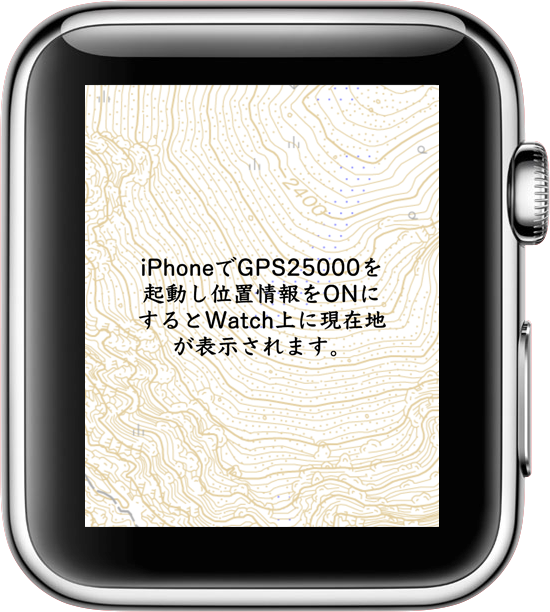 Apple Watch版GPS25000は、iPhoneと連携しWatch上に地図を表示します。Apple Watch単体では利用できません。必ずiPhoneとセットで利用してください。